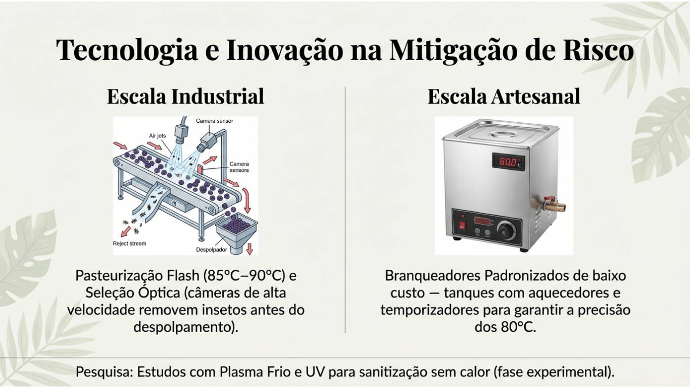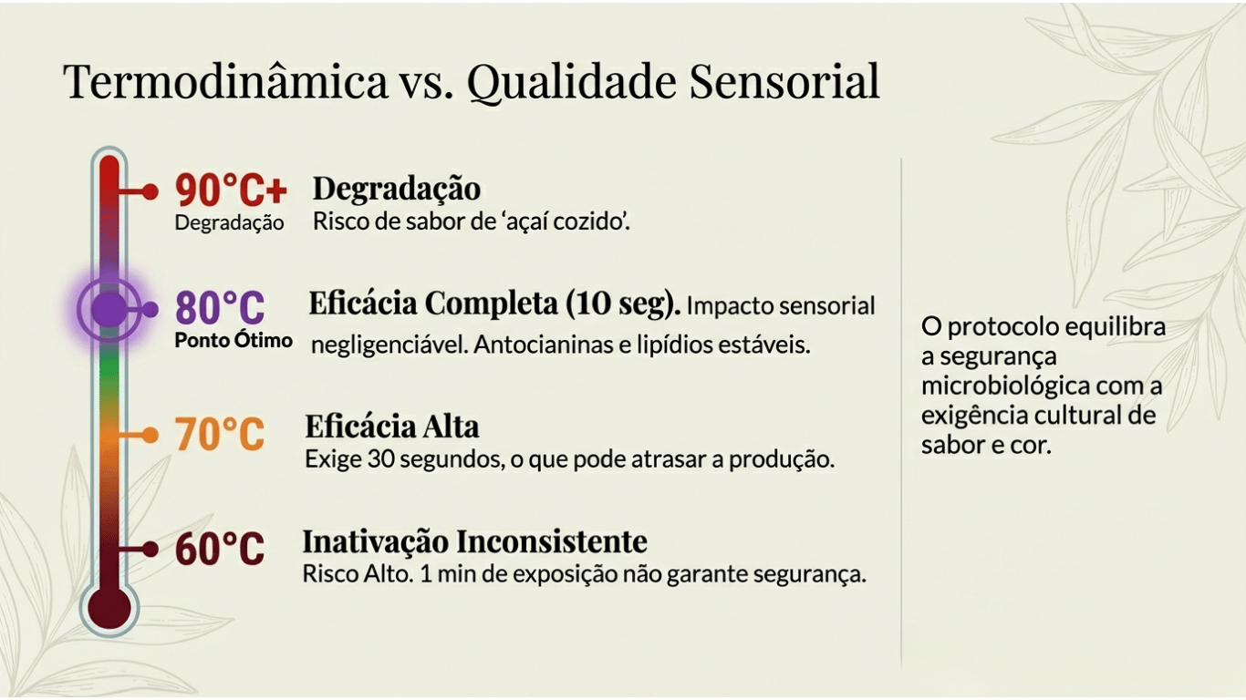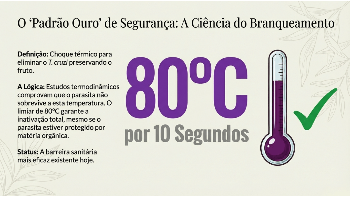 A escolha da temperatura de 80°C é estratégica. Estudos demonstram que essa é a temperatura necessária para garantir que o calor penetre em todas as dobras da casca e na matéria orgânica onde o parasita possa estar protegido, garantindo a inativação completa sem degradar as antocianinas (pigmentos antioxidantes) ou alterar o sabor.