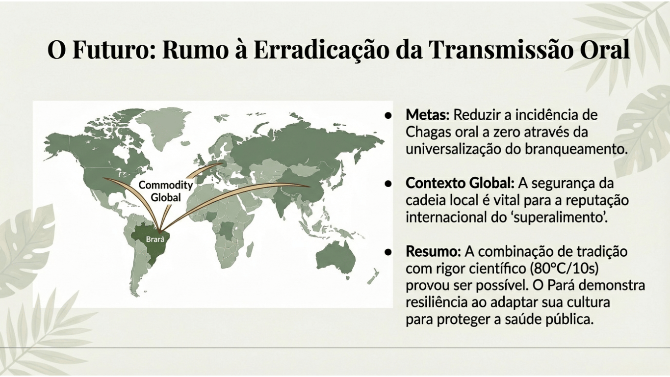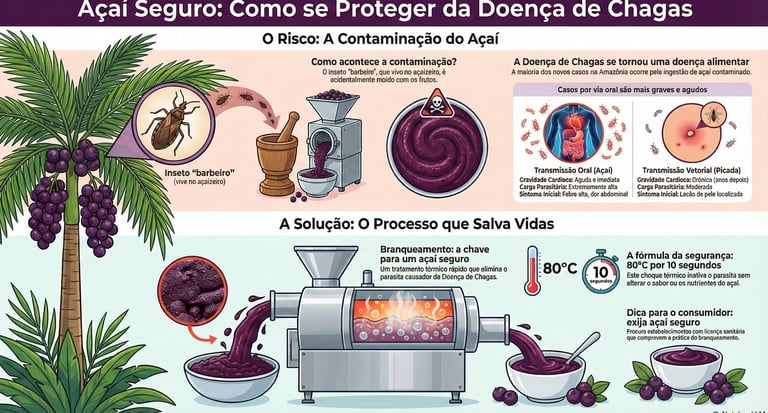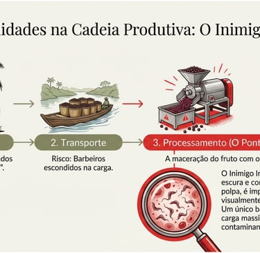 O governo do Pará e as instituições de saúde modernizam a cadeia do açaí com segurança através de uma abordagem multifacetada que combina governança institucional, rigorosos protocolos sanitários (principalmente o branqueamento) e inovação tecnológica. Esta estratégia visa combater a transmissão oral da Doença de Chagas, mantendo a viabilidade econômica de um produto vital para a região.