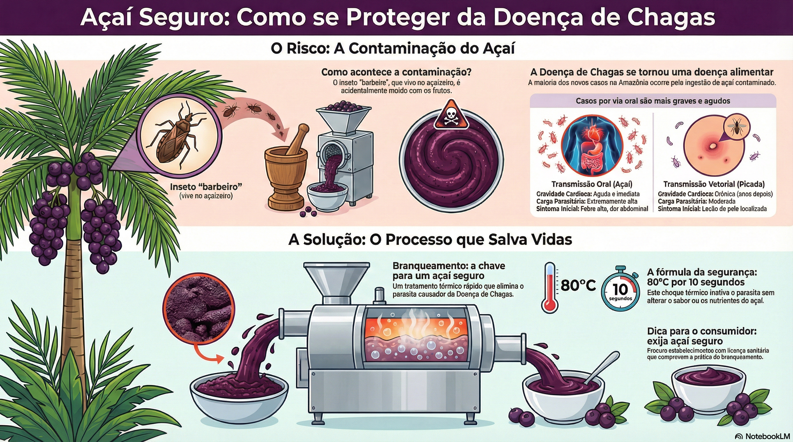 O açaí é o coração econômico e cultural do Pará, tendo evoluído de um grampo da dieta amazônica para um superalimento global onipresente em academias e cafés de Nova York a Tóquio. No entanto, essa trajetória de sucesso enfrenta um desafio invisível: a transmissão oral da Doença de Chagas. O que antes era um risco negligenciado, associado a habitações rurais precárias, tornou-se uma questão crítica de segurança alimentar que ameaça a reputação internacional do fruto. Como a ciência está intervindo para garantir que a tradição milenar da tigela de açaí permaneça segura para o consumo moderno? A resposta reside em uma combinação de biologia, termodinâmica e políticas públicas rigorosas.